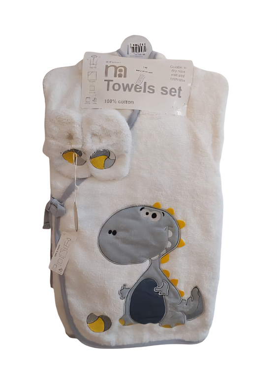 پارچه ی به كار رفته در این ست تهیه شده از جنس صد در صد حوله ای ضخیم است. آبگیری خوبی دارد و به راحتی از پس خشك كردن بدن نوزاد پس از حمام بر می آید. ضد حساسیت است و پوست لطیف و حساس نوزاد را اذیت نمی كند. بهترین راه خشك كردن حوله، قرار دادن مقابل آفتاب است.