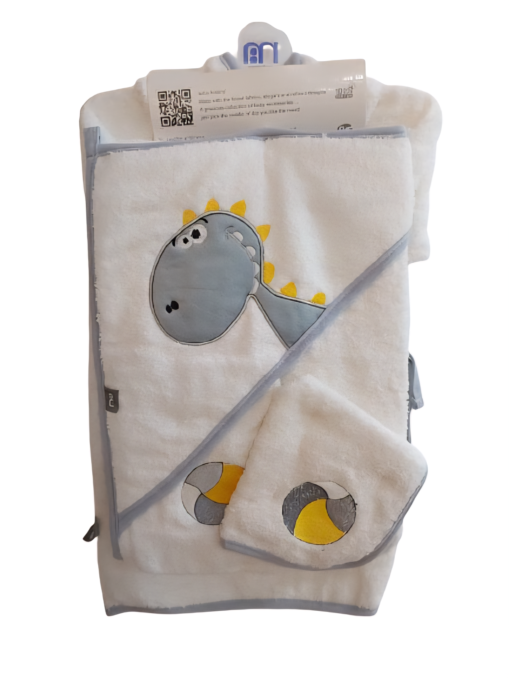 شامل: حوله تن پوش، حوله دورپیچ كلاه دار، لیف بچه و یك جفت پاپوش نوزادی