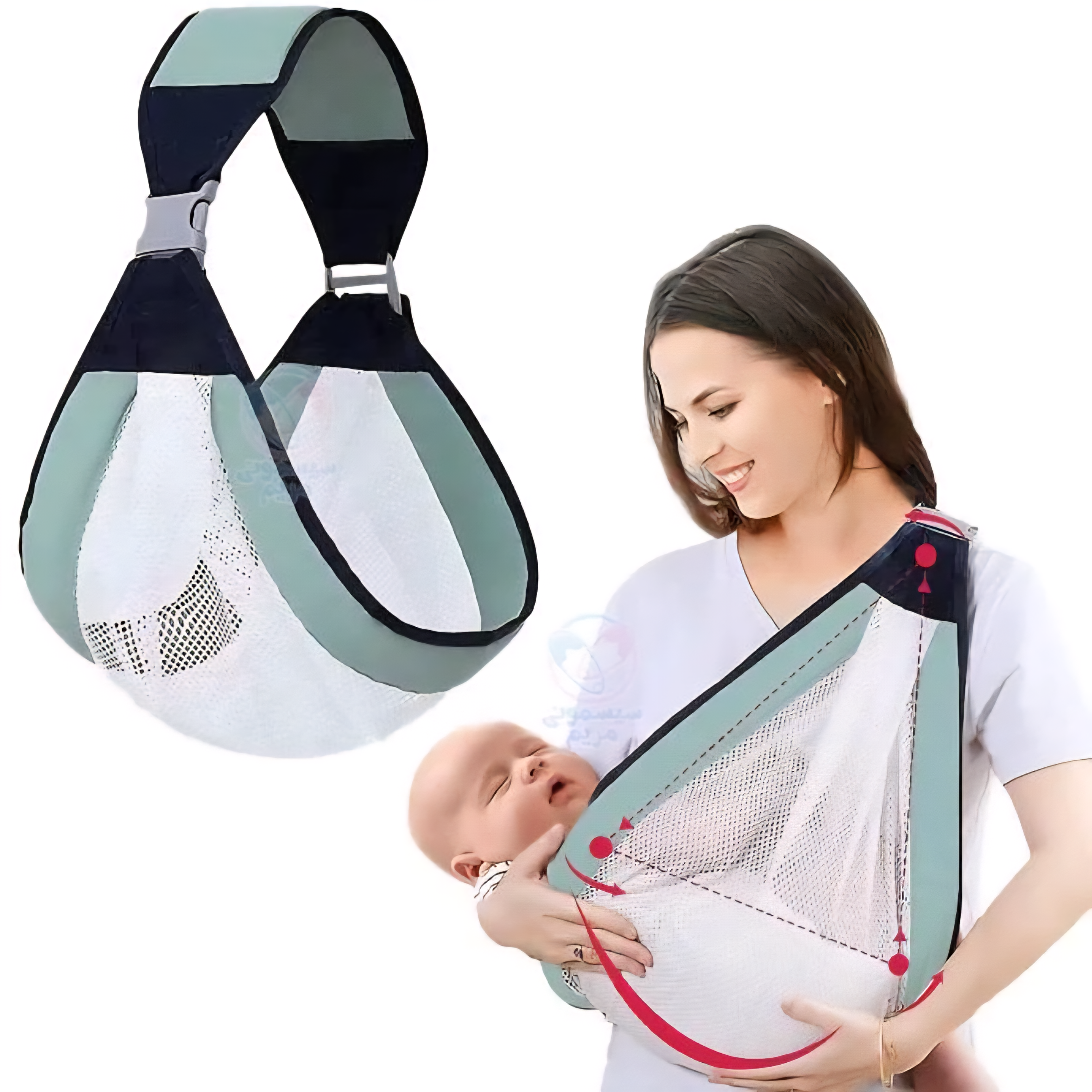 آغوشی توری یکطرفه بیبیاسلینگ، با طراحی ارگونومیک مشابه رحم مادر، مناسب شیردهی و حمل راحت نوزاد از بدو تولد تا ۲۰ کیلوگرم. سبک، قابل تنظیم و قابل شستشو.